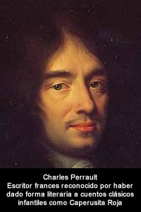 Uno de los más afamados escritores de cuentos infantiles es el escritor Francés, Charles Perrault nace en Paris, el 12 de enero de 1628, ingresa al colegio de Beauvais en 1637; recibe su título de abogado en 1651, en 1654 forma parte del servicio gubernamental, en la creación de la Academia de Ciencias y en la restauración de la academia de pintura, hasta llegar en 1163 a Secretario de la Academia Francesa, en 1671 es nombrado académico y es elegido canciller de la Academia, autor de 46 obras, entre otras: “Los Muros de Troya”, “El Siglo de Luis Grande”, “Paralelo de los Ancianos y Modernos” y obvio, el libro que ha trascendido en el tiempo “Cuentos de Mamá de Oca” magnífica obra que incluyo a Caperucita Roja, El Gato con Botas, La Bella Durmiente, La Cenicienta, Barba Azul, Piel de Asno, Pulgarcito, Las Hadas, Riquet-el-del-Copete,l entre otras.