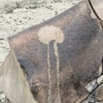 Otros motivos que observamos en los grabados en estas antiguas piedras son objetos de uso cotidiano como serían los raspadores, pero también lo que suponemos son plantas, árboles y flores.
