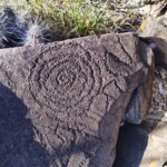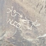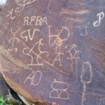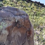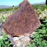 Caminé por el pie del monte y en enormes rocas se observan no pocos grabados. Esta sierra tiene 7 kilómetros de largo y en todo el recorrido puede uno admirar sus representaciones grabadas y algunas pinturas. Este recorrido va desde la carretera, pasa por la presa y llega al papalote, ya en tierras del ejido Las Norias.