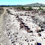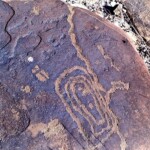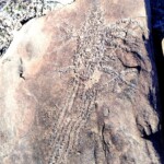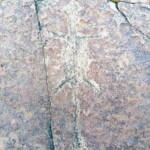 Pasar la roca hacia el oriente, es decir la boca de la cañada se localizan grabados únicos es la parte baja de la cordillera del lado sur, donde Ventura y un servidor le nombramos “El Cañón de las Lagartijas”, pues este tipo de fauna está muy bien representada. Aparte de los reptiles se representó a los venados y aquí destaca una asta de cola blanca, pero solo con su calavera y una cuenta en la parte inferior. Los reptiles son animales vertebrados que se caracterizan por desplazarse reptando, es decir, arrastrándose por el suelo como las serpientes, lagartijas, camaleones y también las tortugas.