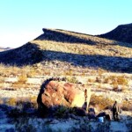 Por la tarde cuando llegamos el calor era asfixiante, pero la noche fue bastante fría y llegamos a los 0°. Ya en el sitio seleccionado para acampar terminamos de instalarnos a eso de las 4:30 de la tarde, lo que me dio oportunidad de recorrer la falda sur del Cañón de las Lagartijas. Ahí se encuentra una enorme roca de 4 × 3 × 2 o más metros de altura, esta roca contiene grabados en todas sus caras incluyendo la parte superior; antes en mi juventud podía subir a la cima, ahora sólo puedo hacerlo con escalera.