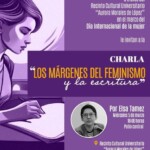 En la Unidad Sureste la Coordinación General de Difusión y Patrimonio Cultural En el Recinto Cultural Universitario “Aurora Morales de López”, este miércoles 5 de marzo a las 18:00 horas en el patio central, se llevará a cabo la Charla “Los márgenes del feminismo y la escritura, por la maestra de la Facultad de Ciencia Educación y Humanidades Elsa Tamez.