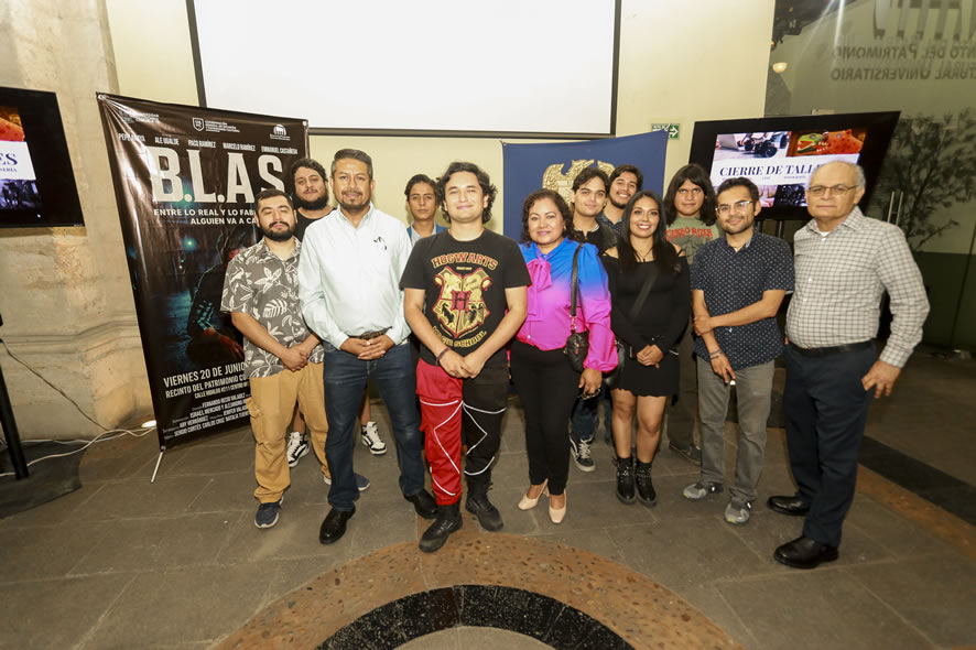 SALTILLO, Coahuila. 23 de junio de 2025. En emotiva noche, el pasado viernes, se llevó a cabo en el Recinto del Patrimonio Cultural Universitario de la Universidad Autónoma de Coahuila la presentación de trabajos de los talleres de Cartonería, Dibujo Artístico y Pintura al Óleo, además de la Premier del Cortometraje B.L.A.S. por alumnos del taller de Producción Cinematográfica.
