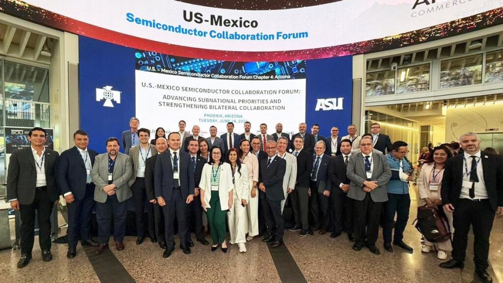 El foro reunió a destacados líderes del sector público y privado de ambos países, incluyendo representantes de empresas tecnológicas, organismos de inversión, así como autoridades gubernamentales de Estados Unidos y México, con el propósito de fortalecer la colaboración estratégica para impulsar la industria de semiconductores en la región.