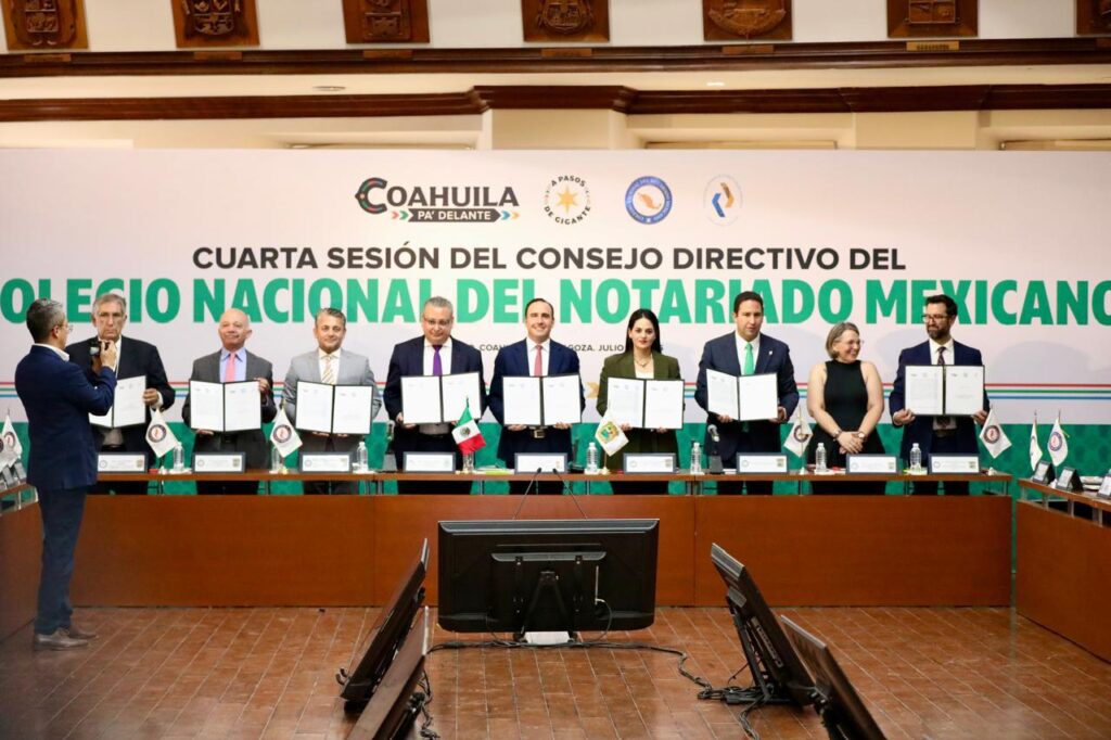 «Nos llena de orgullo que Coahuila sea la sede de la 4ª Sesión del Consejo Directivo del Colegio Nacional del Notariado Mexicano. Este encuentro refleja el trabajo coordinado entre el notariado nacional y el Gobierno del Estado para fortalecer la certeza jurídica, impulsar la cultura del testamento y la actualización permanente de los fedatarios públicos. Aquí seguimos trabajando sociedad y gobierno, a pasos de gigante por un estado con más legalidad y confianza», destacó el gobernador.
