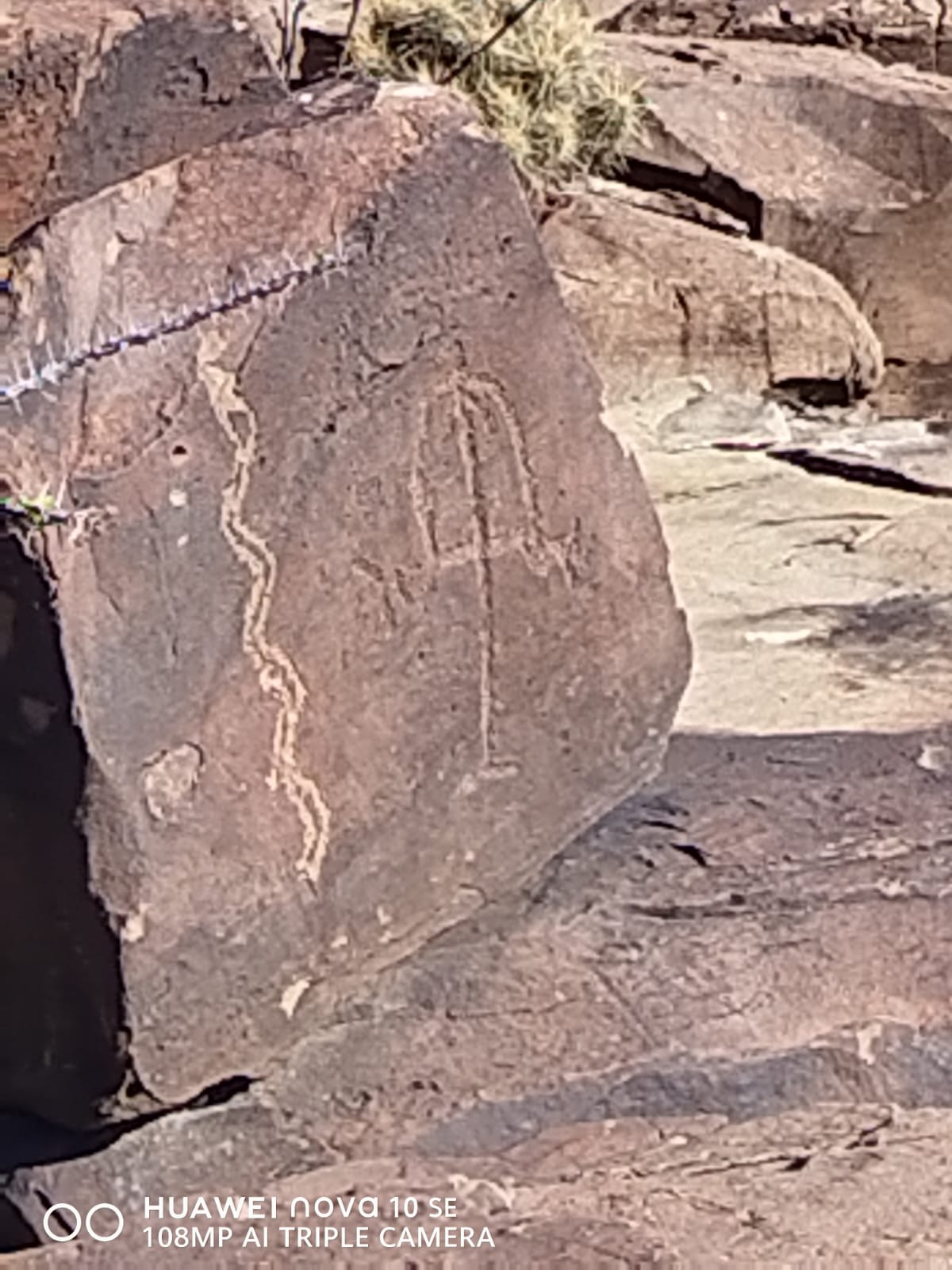 En la parte superior de esta elevación hay gráfica rupestre, poca pero la hay. En cambio, el frentón que se ve al norponiente es el lugar con mayor densidad de petrograbados y una o dos pinturas.