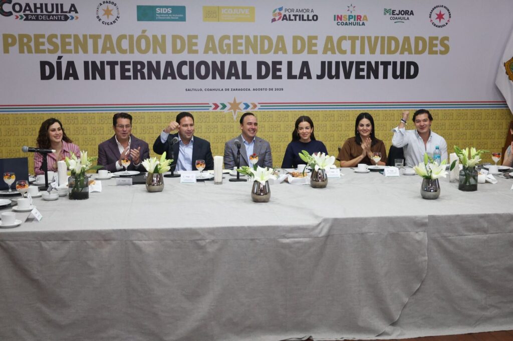 Como evento central, se realizará un encuentro con Jóvenes, donde el gobernador sostendrá un espacio de diálogo directo con liderazgos universitarios y representantes del Consejo Estatal “Jóvenes Pa’ Delante”, impulsando el trabajo colaborativo y la participación activa de la juventud en las políticas públicas de Coahuila; así como el Premio Estatal de la Juventud “Jóvenes Gigantes” 2025.