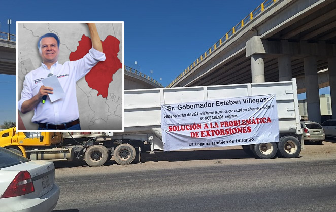 Últimamente transportistas y amplios e importantes sectores de la población de la Laguna de Durango, que están siendo víctimas de extorsionadores pertenecientes a una confederación sindical se han manifestado con pancartas, mítines, bloqueos de vías públicas que desquician el tránsito, y otros medios, en contra del gobernador Esteban Villegas, porque no está haciendo nada para acabar con la inseguridad pública que está azotando a nuestro vecino estado; uniéndose a ellos ciudadanos de todos los estratos sociales que colateralmente están sufriendo esta violencia.
