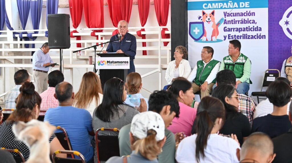Matamoros, Coahuila de Zaragoza; 19 de Agosto de 2025.- El Gobierno de Coahuila, a través de la Secretaría de Salud en coordinación con el Ayuntamiento de Matamoros puso en marcha la Campaña de Vacunación Antirrábica, Garrapaticida y Esterilización además de la Campaña de Descacharrización en esta ciudad.