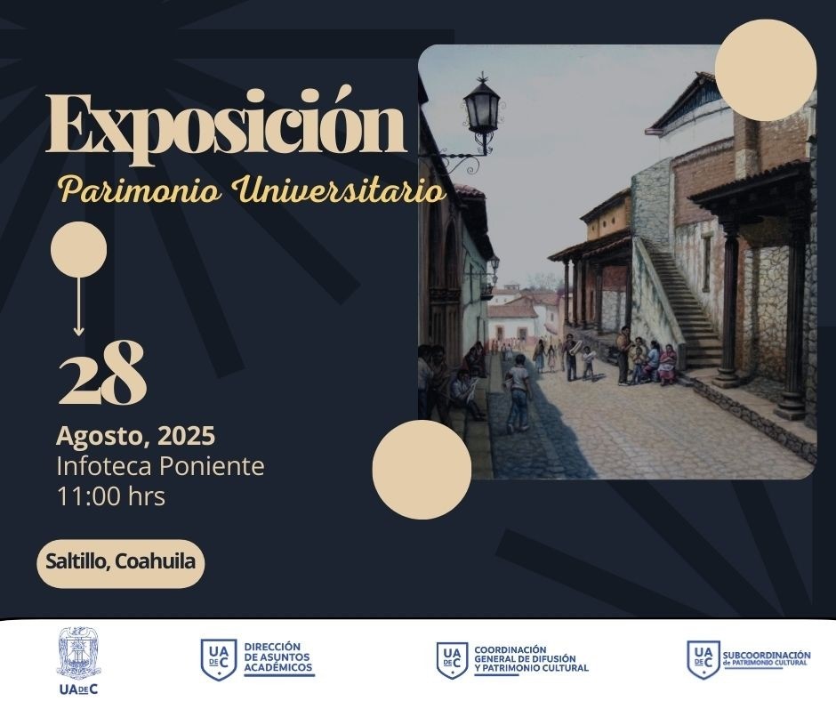 SALTILLO, Coahuila. 27 de agosto de 2025. Como algunas de las actividades que desarrolla la Universidad Autónoma de llevar la cultura a la comunidad universitaria y la población en general, a través de la Coordinación de Difusión y Patrimonio Cultural, invita a la Exposición Itinerante “Patrimonio Universitario” en la Infoteca Poniente ubicada en Avenida Cuquita Cepeda de Dávila s/n en la colonia Adolfo López Mateos.