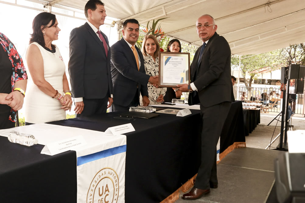 En la ceremonia se contó con la presencia del rector de la máxima casa de estudios, Octavio Pimentel Martínez, la presidenta honoraria del DIF, Coahuila, Liliana Salinas Valdés, la coordinadora de Unidad Sureste, Eva Kerena Hernández Martínez, el director de la Facultad, José González Tovar, en representación de la presidenta honoraria del DIF Saltillo, Lourdes López Naranjo, la directora de Salud, Leticia Flores Ríos, la hija del fundador del plantel, María Inés Uribe y de la empresa Human Resources, Lucero Salazar.