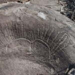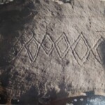 En este mismo sitio podemos observar otra “estrella” pero de 16 puntas y no menos fácil de replicar y menos de interpretar tan hermosa figura finamente grabada. En este caso y en el anterior que está rodeado de cuentas y la base de puntos. Estas cuentas están grabadas en seis líneas verticales largas, un par de línea de puntos horizontales y cuatro líneas cortas verticales y que en total suman 115 puntos que corresponden a cuatro meses sinódicos, un gran enigma para nosotros, gentes del siglo XXI.