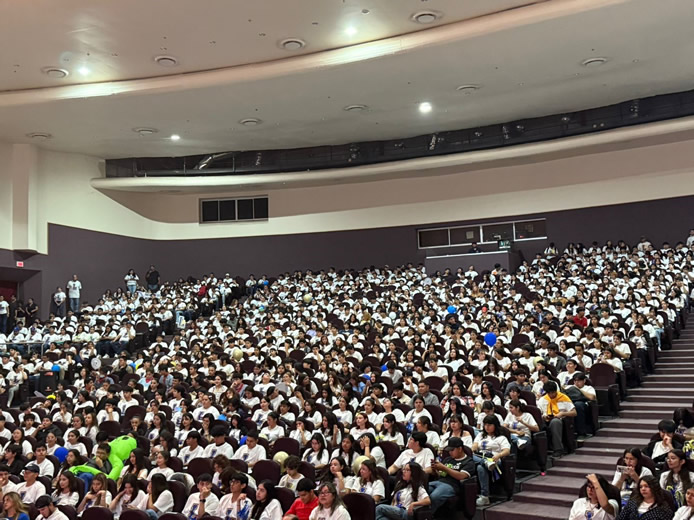 En el Teatro de la Ciudad “Raúl Flores Canelo”, el Rector recibió a los estudiantes de nuevo ingreso, a quienes, comentó que la Universidad esta dedicada a apoyarlos y guiarlos para que cumplan sus sueños y sean las y los egresados que necesitan Coahuila y México, por lo que los invitó a hacer que pegue la L de los Lobos en todas partes.