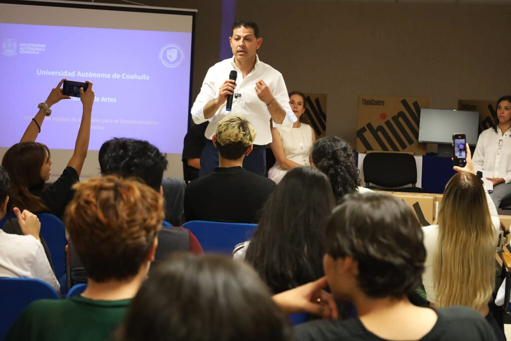 TORREÓN, Coahuila. 1 de octubre de 2025. La comunidad universitaria de la Escuela de Artes Escénicas y Gestión Cultural Unidad Laguna de la Universidad Autónoma de Coahuila, recibió por parte del rector Octavio Pimentel Martínez, 20 equipos de cómputo.
