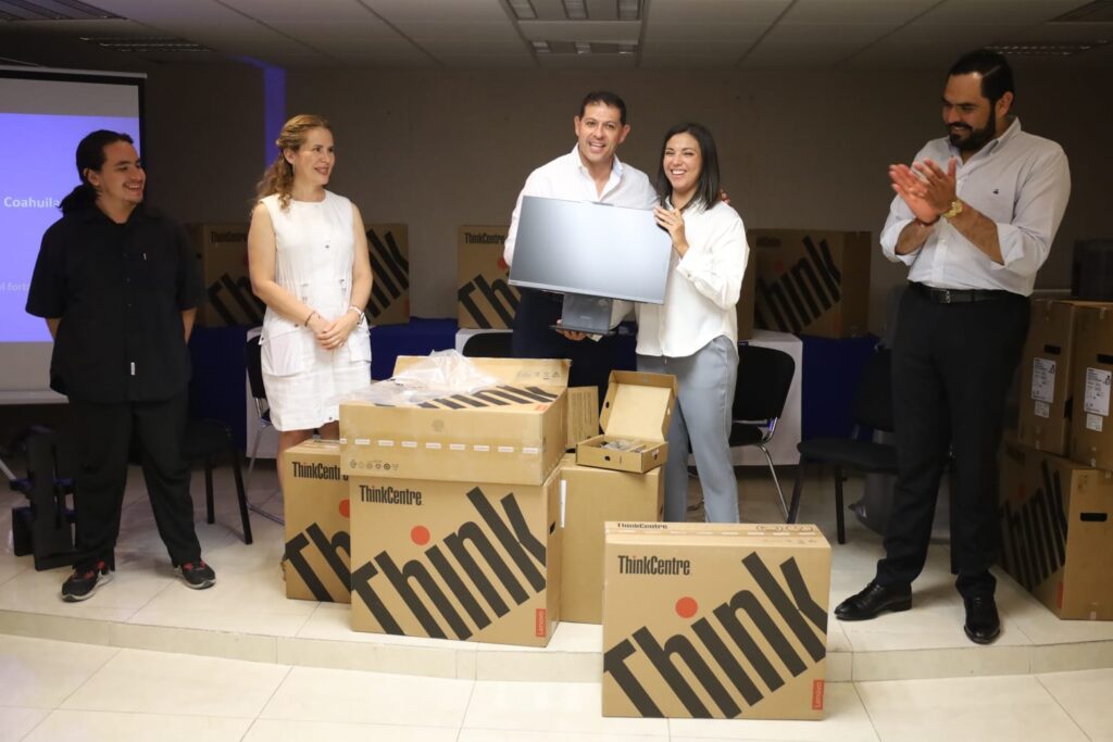 Agregó que esta entrega de 20 equipos de cómputo representa un monto total de 549 mil 399 pesos, equipos que cuentan con Procesador Intel Core i7, memoria de 16 GB y pantalla led de 23.8″ pulgadas.