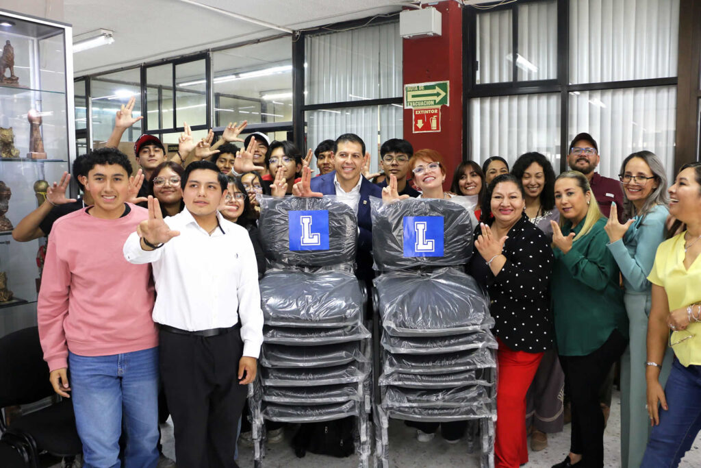 SALTILLO, Coahuila. 15 de octubre de 2025. Para fortalecer la infraestructura académica de la comunidad universitaria de la Preparatoria Número Uno y del Instituto de Enseñanza Abierta (IDEA), de la Universidad Autónoma de Coahuila, el rector Octavio Pimentel Martínez, entregó 120 mesabancos y 40 sillas de escritorio respectivamente.