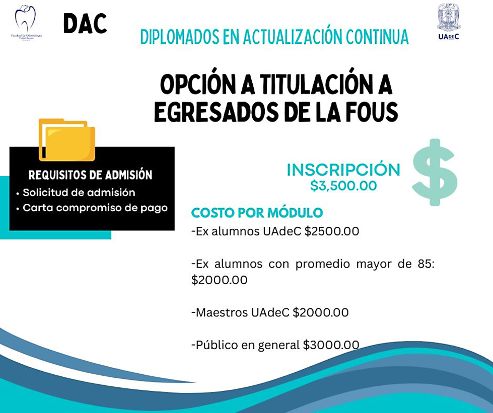 SALTILLO, Coahuila. 3 de diciembre de 2025. La Facultad de Odontología Unidad Sureste (FOUS) de la Universidad Autónoma de Coahuila invita a profesionales del área que buscan fortalecer sus competencias clínicas, académicas y de gestión, así como a egresados de la propia Facultad que deseen optar por la titulación mediante este esquema, a inscribirse a sus Diplomados en Actualización Continua 2026.
