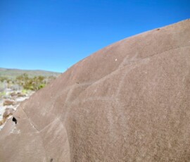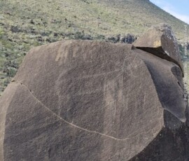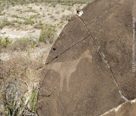 En una roca no lejos del mencionado venado, otra piedra de grandes dimensiones y que en el lugar más alto de la misma se encuentra un animal con delineado superficial que a mi parecer se trata de un coyote.