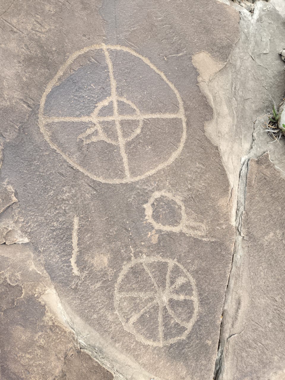 De igual forma podemos ver el enigmático grabado al que los vecinos le pusieron “El Avioncito”, sino que se complementan con otros grabados donde podemos apreciar armas, proyectiles y navajas, pero también fauna como lo es una hermosa tortuga, un ave y un venado de grandes dimensiones, pues es cuerpo entero y mide más de un metro de la cabeza a la cola y de una respetable altura de aproximadamente 60 cm.