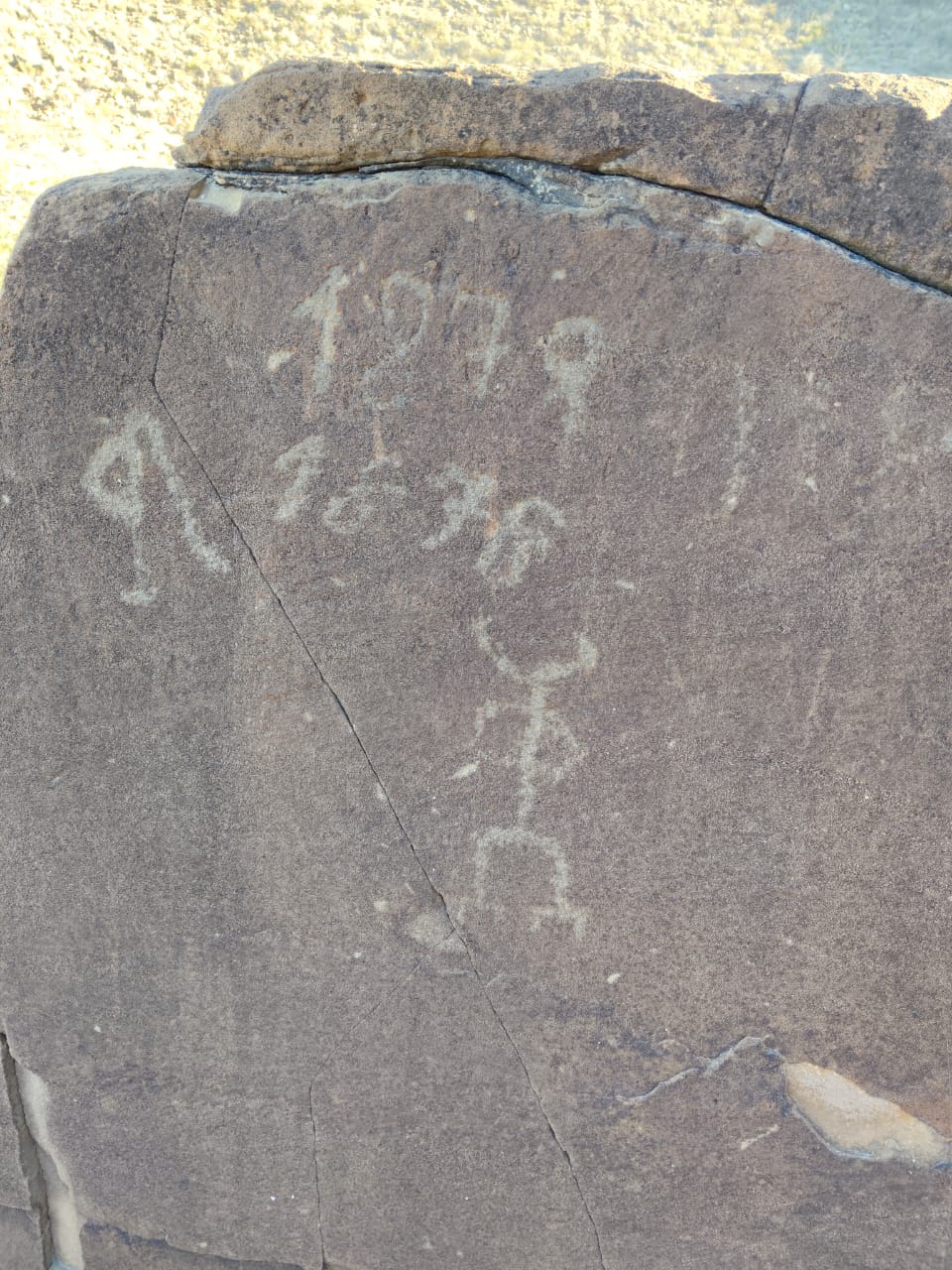 Siguiendo los grabados también podemos encontrar avisos políticos, fierros de herrar, recuerdos amorosos, pornográficos y vandalismo. Casi al final de la cañada se grabó el frontis de una iglesia, en otras rocas se hace mención al nombre del ejido y para variar un graffiti en inglés.