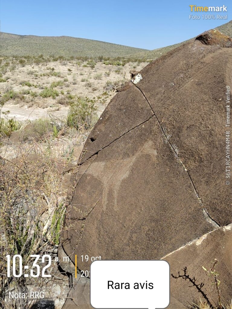 En otra roca al sur de la anterior cruzando el arroyo se encuentra un raro grabado que representa un ave, pudiera tratarse de una codorniz que por allí abundan hasta el presente.