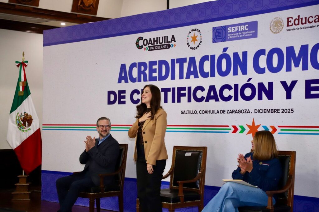 Saltillo, Coahuila de Zaragoza; 16 de diciembre del 2025.- La Secretaría de Fiscalización y Rendición de Cuentas (SEFIRC) recibió la acreditación como Entidad de Certificación y Evaluación de Competencias y Habilidades por parte del Sistema CONOCER de la Secretaría de Educación Pública (SEP), con lo que se fortalecerá la profesionalización en la Administración Estatal.