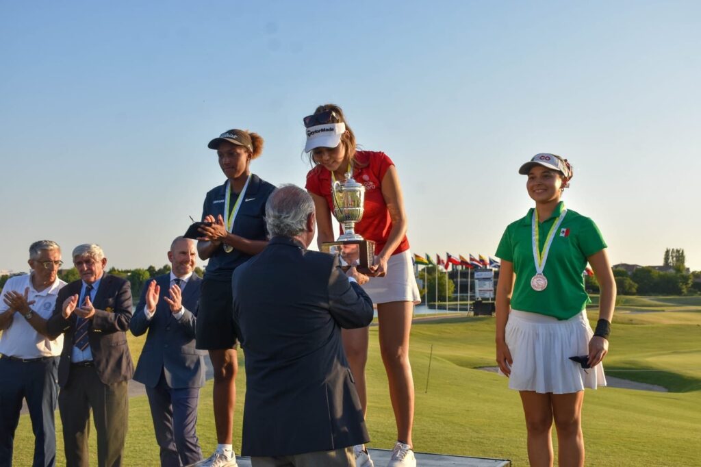 Saltillo, Coahuila de Zaragoza; a 14 de enero de 2026.- La golfista coahuilense Regina Jiménez Jardón conquistó la tercera posición del Abierto Sudamericano de Golf, evento que se llevó a cabo en Buenos Aires, Argentina.