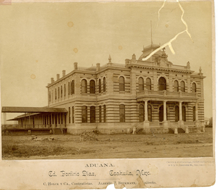 Durante el Porfiriato, los ingresos de la aduana permitieron modernizar la infraestructura fiscal. En este contexto, la construcción de la Aduana de Ciudad Porfirio Díaz (hoy Piedras Negras) en 1889 marcó un momento decisivo para la región fronteriza tanto en términos arquitectónicos como administrativos. De acuerdo con las fuentes consultadas permiten identificar a C. Holck y Cía. como contratistas responsables de la obra y a los arquitectos Albert Felix Beckmann y James Riely Wahrenberger como proyectistas y supervisores técnicos.