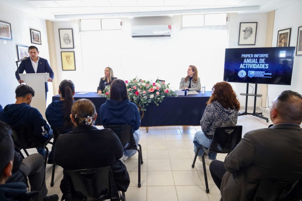 Al presentar su informe, señaló que los resultados obtenidos son reflejo del compromiso, responsabilidad y vocación de servicio que distinguen a la comunidad del plantel, que ha logrado consolidarse y destacar en las áreas académica, administrativa, deportiva, social y cultural, tomando como base los principios y políticas del Plan de Desarrollo Institucional de la Universidad Autónoma de Coahuila.