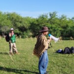 Muy puntuales llegaron al crucero a las seis de la mañana procedentes de Monclova (la mayoría), pero también de Cuatro Ciénagas, Castaños y Frontera. En esta ocasión participamos tanto Ventura como un servidor, ya en el lugar (campamento) y con el fondo de la Presa Pantalones les dimos una introducción al tema arqueológico, donde destacamos los grabados de la elevación donde se encuentra la presa y con el altavoz nos hicimos escuchar.