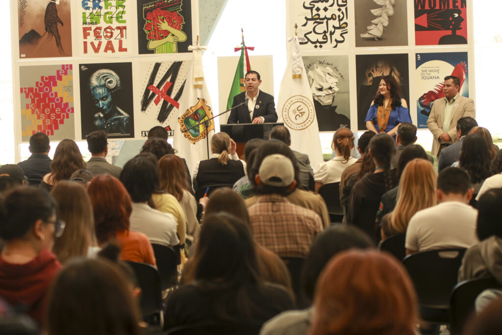 Por su parte, la directora de la Facultad de Artes Plásticas, Raquel Torres, señaló que esta inauguración es un momento profundamente significativo para la UAdeC, pues la exhibición de la Décima Octava Bienal Internacional del Cartel en México se lleva a cabo en el Marco del 69 aniversario de la institución, lo que habla de una Universidad que entiende el arte y el diseño, no como expresiones aisladas, sino como un lenguaje fundamental para comprender y trascender en nuestro entorno.