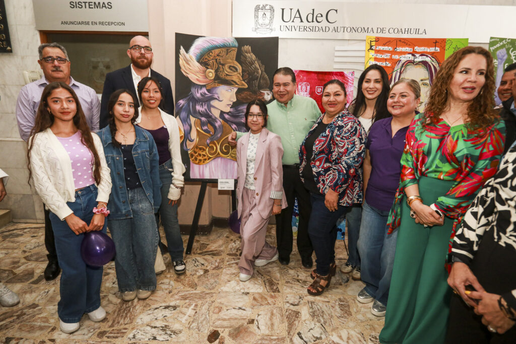 SALTILLO, Coahuila. 4 de marzo de 2026. La Universidad Autónoma de Coahuila a través de la Coordinación General de Difusión y Patrimonio Cultural y el Programa Lobos Culturales, en el marco del Día Internacional de la Mujer y el aniversario 69 de la institución, inauguró la exposición “Ella somos todas” en el Lobby del edificio de Rectoría.