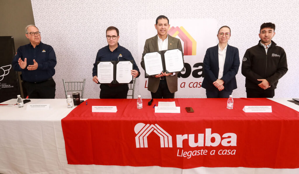 RAMOS ARIZPE, Coahuila.13 de marzo de 2026. La Universidad Autónoma de Coahuila a través de la Coordinación General de Vinculación e Innovación Productiva y la empresa RUBA, firmaron un convenio marco de colaboración para la educación dual, por lo que estudiantes de la Facultad de Arquitectura Unidad Sureste estarán realizando estancias en la desarrolladora de viviendas.