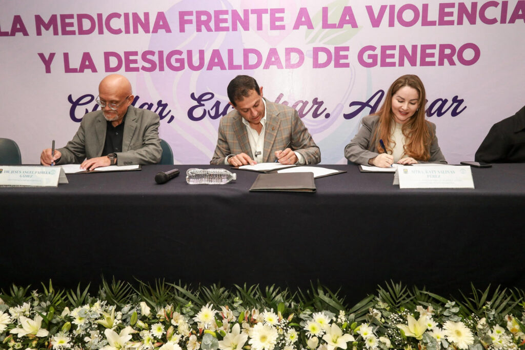 SALTILLO, Coahuila. 20 de marzo de 2026. En el marco del Día Internacional de la Mujer, la Universidad Autónoma de Coahuila a través de la Facultad de Medicina Unidad Sureste y la Fiscalía de las Mujeres y la Niñez, firmaron la Alianza de Colaboración para la Atención de Mujeres Víctimas de Violencia y con ello se da paso a la inclusión en el Plan de Estudios de la formación de Médico Cirujano el Taller “El papel del médico de primer contacto en caso de violencia de género”.