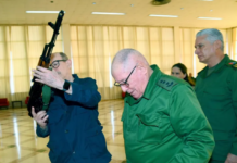 La Habana, Cuba.– El cantautor cubano Silvio Rodríguez recibió una réplica de un fusil AKM durante una ceremonia oficial realizada en la...