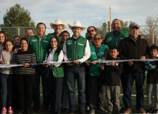 En el ejido Los Alamos se llevó a cabo la entrega de obra de rehabilitación de la plaza pública y la cancha deportiva.