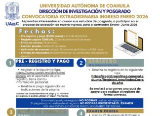 SALTILLO, Coahuila. 11 de diciembre de 2025. La Facultad de Ciencia, Educación y Humanidades (FCEyH) de la Universidad Autónoma de Coahuila anunció la apertura del Curso de Preparación para el Examen de...