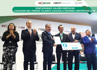 Premio Talento Coahuila Jóvenes Científicos 2022 Categoría Investigación Científica es José Rodrigo Valdés Zertuche,...