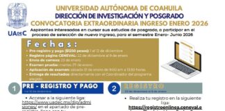 SALTILLO, Coahuila. 10 de diciembre de 2025. La Universidad Autónoma de Coahuila, a través de la Dirección de Investigación y Posgrado, invita...